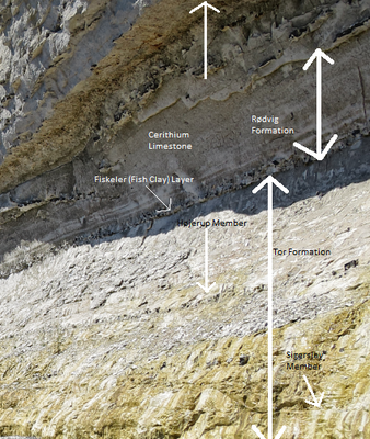 De klif toont secties van het jongste gedeelte van het Maastrichtien en de oudste tijden van het Danien met tussenliggend de Krijt-Paleogeengrens zichtbaar door een sedimentlaag met iridium, vaak aangeduid als de iridiumanomalie.
