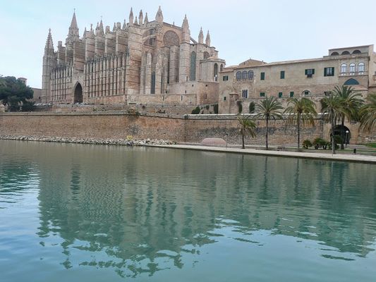 La Seu, de kathedraal van Palma de Mallorca is één van de mooiste van de wereld. Vanop het fietspad, of vanaf het park aan de stadsrand heb je er een prachtig zicht op. Het duurde ruim 300 jaar om de kathedraal te bouwen op de restanten van een oude moskee. Aan het begin van de 20ste eeuw maakte Antonio Gaudi er binnen nog aanpassingen aan.