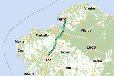 Totale route Ferrol - Santiago de Compostella
