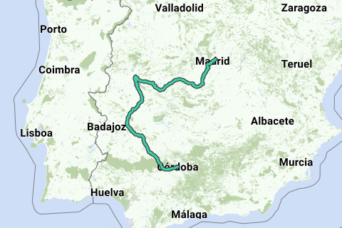 <p><a class="routeYou_embed" href="https://app.routeyou.com/nl-es/route/view/16448134?utm_source=embed&utm_medium=article&utm_campaign=routeshare&navigation=external" title="Madrid - Córdoba - RouteYou" target="_blank"><img src="https://image.routeyou.com/embed/route/960x670/16448134-nl@2x.png" style="width: 100%; height: auto;" alt="Madrid - Córdoba"></a></p>