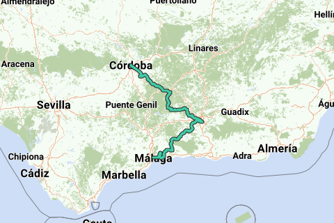 <p><a class="routeYou_embed" href="https://app.routeyou.com/nl-es/route/view/2116060?utm_source=embed&utm_medium=article&utm_campaign=routeshare&navigation=external" title="Fietsroute: Malaga, Granada, Cordoba - RouteYou" target="_blank"><img src="https://image.routeyou.com/embed/route/960x670/2116060-nl@2x.png" style="width: 100%; height: auto;" alt="Fietsroute: Malaga, Granada, Cordoba"></a></p>