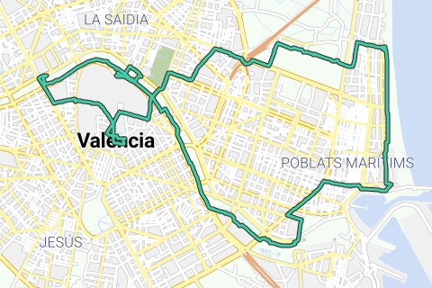 route 22 km door Valencia langs museum voor schone kunsten, Turiapark, Gulliver speeltuin, kust...
