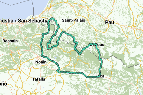 Lange route die ons over Navarrese en Franse wegen zal voeren, zigzaggend langs de grens.