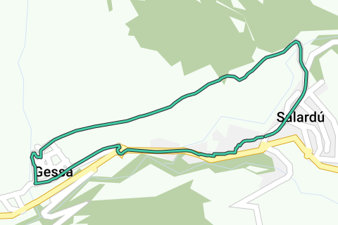 Verlaat Salardú in de richting van Unha via de lokale weg en steek de stad over. Bij de fontein aan de uitgang van Unha, neem het pad naar rechts van de heuvel, richting Gessa via het bovenste gedeelte. Ga vanaf het dorpsplein terug naar Salardú via de lokale weg. Bij de rotonde op de C-25 weg, neem het pad aan de linkerkant dat terug naar Unha gaat. De terugweg naar Salardú verloopt over hetzelfde pad en doorkruist Unha. Je kunt terug van de rotonde naar Salardú door de C-25 te volgen, die een goede schouder heeft ondanks af en toe druk verkeer. Dit zal een stuk pad met meer hellingen vermijden.