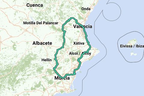 <p><a class="routeYou_embed" href="https://app.routeyou.com/nl-es/route/view/8904257?utm_source=embed&utm_medium=article&utm_campaign=routeshare&navigation=external" title="Alicante-Valencia-Murcia-Alicante - RouteYou" target="_blank"><img src="https://image.routeyou.com/embed/route/960x670/8904257-nl@2x.png" style="width: 100%; height: auto;" alt="Alicante-Valencia-Murcia-Alicante"></a></p>
