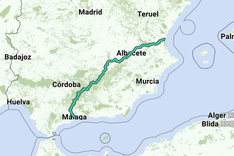 <p><a class="routeYou_embed" href="https://app.routeyou.com/nl-es/route/view/9345259?utm_source=embed&utm_medium=article&utm_campaign=routeshare&navigation=external" title="Málaga - Valencia - RouteYou" target="_blank"><img src="https://image.routeyou.com/embed/route/960x670/9345259-nl@2x.png" style="width: 100%; height: auto;" alt="Málaga - Valencia"></a></p>