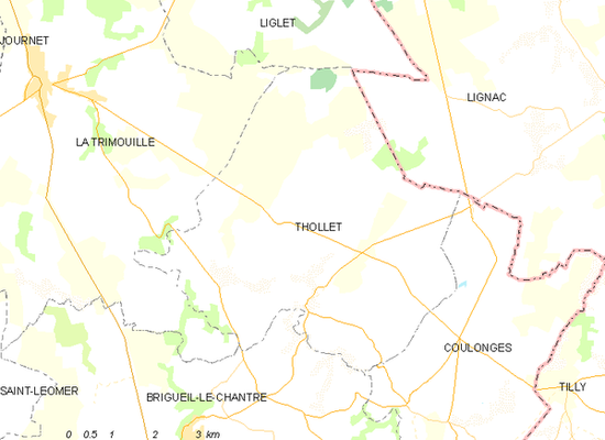 De onderstaande kaart toont de ligging van Thollet met de belangrijkste infrastructuur en aangrenzende gemeenten.