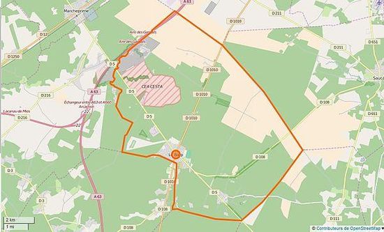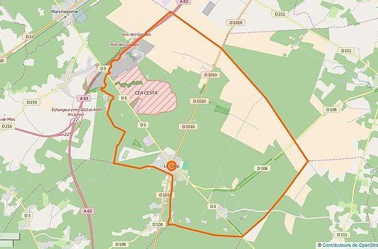 De onderstaande kaart toont de ligging van Le Barp met de belangrijkste infrastructuur en aangrenzende gemeenten.