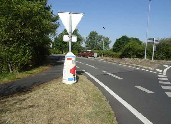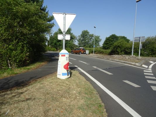 borne vermist; de replica van de velopalise 2024 opgesteld op de rotonde naast de Voie de la liberté