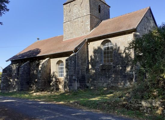 Het romaanse kerkje van Aigremont. Naast het kerkje is er een picknickplaats en een uitzichtpunt