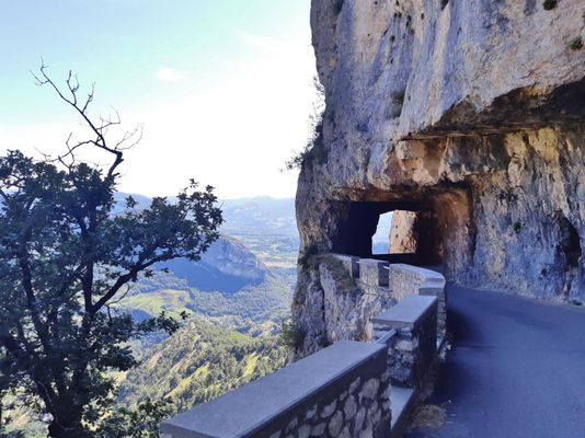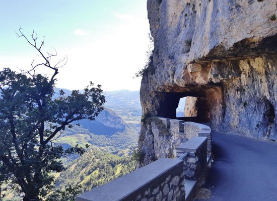 Route de Presles is een zogenaamde balkonweg, een weg langs een rotswand met tunneltjes en steile afgronden (één van de vele balkonwegen in de Vercors). Vanaf deze weg heb je een schitterend panorama op de Vercors.