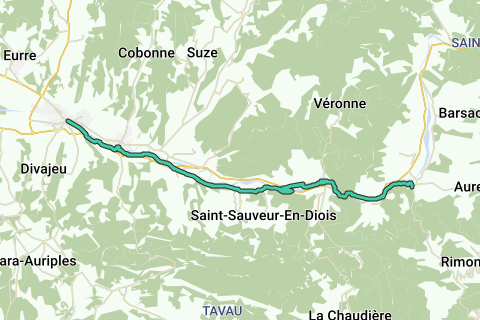 VanuitCrest voorbij Saillans naar de zijrivier La Roanne en weer terug