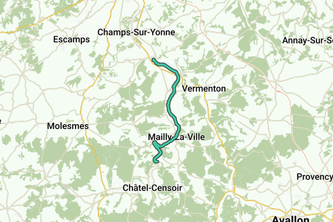 Stukje van het kanaal van Nivernais vanaf Rocher du Saussois naar Vincelles en weer terug.