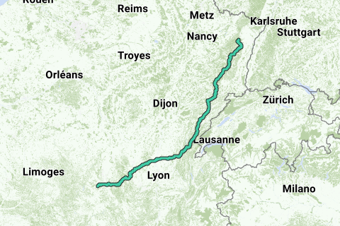 Van Wangenbourg-Engenthal door de Vogezen, de Doubs, jura en Beaujoalis tot de Auvergne.