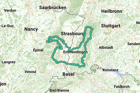 Rondrit vanuit Raon-l'Etape via de Vogezen, naar het Zwarte Woud en terug via de Vogezen.