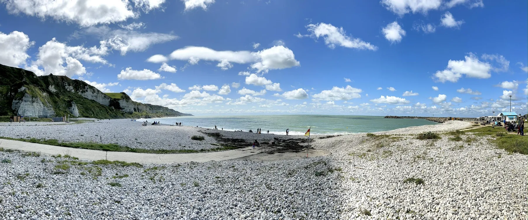 Helemaal onverwacht ter hoogte van Saint Jouin-Bruneval wijken we kort van de oorspronkelijke route af daar we een prachtige weg tegen kwamen die al slalommende afdaalde. Hier namen we de beslissing deze te gaan verkennen en dit was de juiste beslissing. Het uitzicht was indrukwekkend en de verassing was groter wanneer we beneden aankwamen, er was een zeer grote parking en horeca aanwezig vlakbij een mooi uitgestreken strand en de gekende rotswanden die je veel in Normandië tegen komt langs de kuststreek.