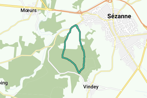 Boswandeling in de buurt van Sézanne. Vertrek aan de camping / zwembad van Sézanne. Ongeveer 500 m asfalt, de rest onverhard. Een stuk bosweg op de terugweg is gedeeltelijk dichtgegroeid maar nog bruikbaar (voorjaar 2013).