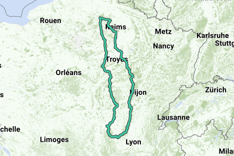 Vanuit Coucy-le-Château, tussen Saint-Quentin en Soisson, net onder het circuit van Folembray over Joigny aan de Yonne tot Chablis in het noorden van de Bourgogne.