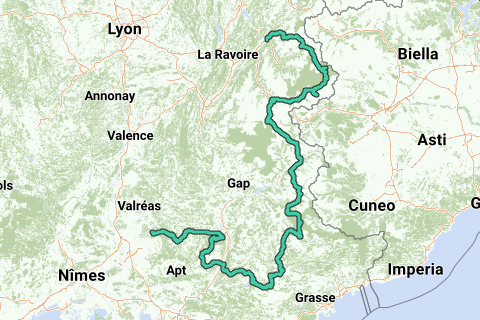 De gpx-bestanden per etappe zijn te vinden in de trackgroep Tour des Grands Cols Alpes.