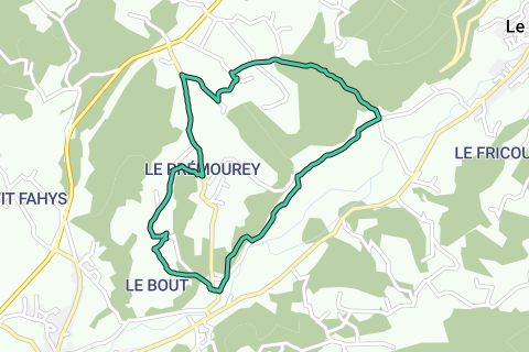 Rechtsaf over de velden om het gehucht "Chez Jean Dicotet" te bereiken. Ga links omhoog en blijf op de asfaltweg tot aan "Chez Dauvy". Ga bij het oratorium naar rechts en neem in het gehucht "Gris" een graspad naar rechts omlaag naar een fontein. Ga terug omhoog om bij de weg te komen. Het kruis van Prémourey is iets verder aan de rechterkant.
