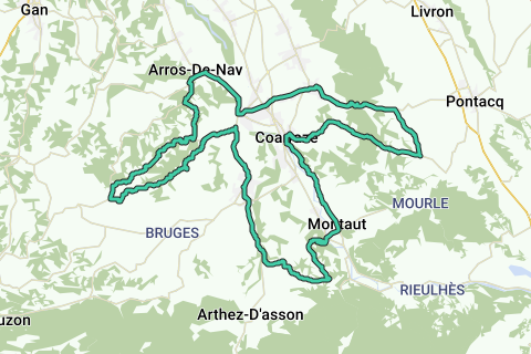Een prachtige route rond de Nay regio die de vlakte en de heuvels doorkruist. Deze progressieve route voert over de eerste glooiingen van de Pyreneeën en biedt prachtige landschappen. Fietsen door dit landbouwgebied herinnert ons er echter aan dat de bergen dichtbij zijn, met hun beroemde bergpassen.
