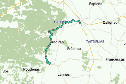 Als u met de trein van Mézin naar Nérac wilt terugkeren, raden wij u aan om op de heenweg gebruik te maken van de wandelpaden die aan de rand van het Landes-bos zijn uitgezet. U loopt door delen van verschillende lussen en vergezelt misschien, tussen Cauderoue en Mézin, de pelgrims van St-Jacques op weg naar Compostela.