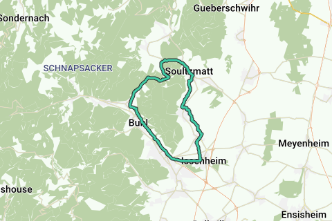 Een "klassieke" route rond Guebwiller via de Bannsteinpas en Soultzmatt en terug via de wijngaardenfietsroute.