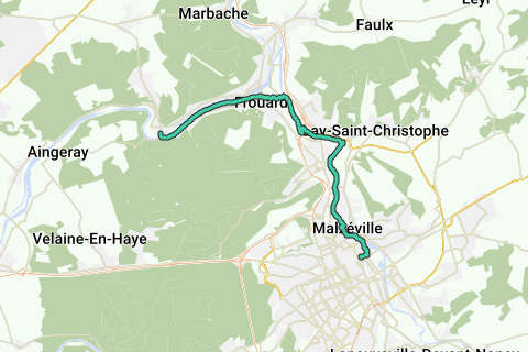 Deze route van 18 km kan in beide richtingen worden gebruikt en biedt het plezier van fietsen langs de oevers van de Meurthe en de Moezel, tussen landelijke landschappen, erfgoed en industriële rijkdom.