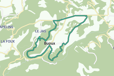Vanaf de parkeerplaats bij de noordelijke ingang van het dorp, ga rechts op D113 en sla linksaf. Voor het gemeentehuis, sla rechtsaf en klim de steile smalle weg op. Passeer een haarspeldbocht en bereik het plateau. Voor de Sainte-Marie kapel aangrenzend aan de begraafplaats, blijf op het pad naar rechts (GR®)). Na een groot veld, sla snel linksaf en stort naar beneden over de helling naar de boerderij van Jas (voorzichtig zijn)!). Sla linksaf langs de kleine weg, ga door de boerderij en ga verder voor 300 m.