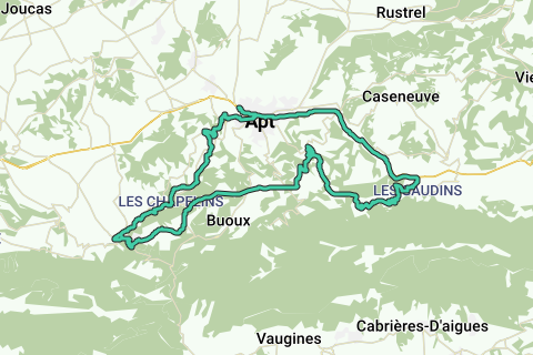 Bij de ingang van het toeristenbureau Pays d'Apt Luberon ga je links op de esplanade, steek je de D900 over (pas op voor het verkeer!) en het parkeerterrein van het oude station over om de Fietspaden van de Calavon te bereiken.