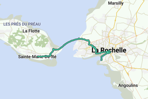 <p><a class="routeYou_embed" href="https://app.routeyou.com/nl-fr/route/view/16583770?utm_source=embed&utm_medium=article&utm_campaign=routeshare&navigation=external" title="La Rochelle - Sainte-Marie-de-Ré - RouteYou" target="_blank"><img src="https://image.routeyou.com/embed/route/960x670/16583770-nl@2x.png" style="width: 100%; height: auto;" alt="La Rochelle - Sainte-Marie-de-Ré"></a></p>