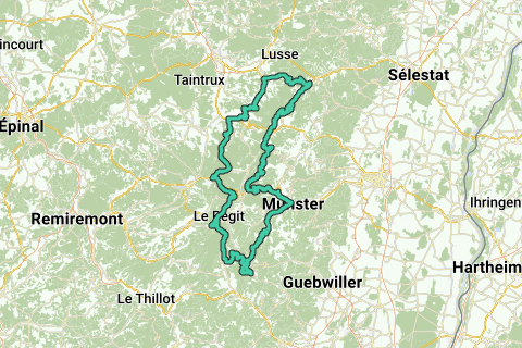 Col de Surceneux - Fraize - Col Pres de Raves - Col de Calvaires - Munster - Col du Platzerwasel - afdaling Le Markstein - Col de Bramont - Col de Faigne -afdaling naar Longemer