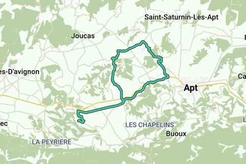 Fietsroute langs de okergroeves van Gargas en Roussillon. Voor een groot stuk bewegwijzerd. Hoofdzakelijk langs kleine asfaltwegen en aparte fietspaden.