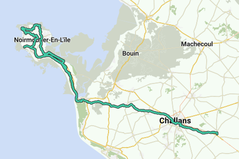 Fietstocht door het eiland Noirmoutier, gebruikmakend van de fietspaden en terug naar Saint-Christophe de Ligneron via Challans. Ongeveer 85 km.