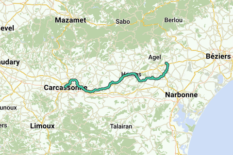 Ontdek alle voordelenDit parcours volgt het Canal du Midi (deel 3/5: Carcassonne-Argeliers). Het kanaal verbindt de Garonne-rivier met het Étang de Thau aan de Middellandse Zee en vormt samen met het 193 km (120 mijl) lange Canal de Garonne het Canal des Deux Mers, dat de Atlantische Oceaan met de Middellandse Zee verbindt. Het kanaal loopt van de stad Toulouse naar het Étang de Thau nabij de Middellandse Zee.