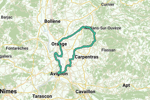 <p><a class="routeYou_embed" href="https://app.routeyou.com/nl-fr/route/view/4790934?utm_source=embed&utm_medium=article&utm_campaign=routeshare&navigation=external" title="Orange - Chateau9DP - Avignon - RouteYou" target="_blank"><img src="https://image.routeyou.com/embed/route/960x670/4790934-nl@2x.png" style="width: 100%; height: auto;" alt="Orange - Chateau9DP - Avignon"></a></p>