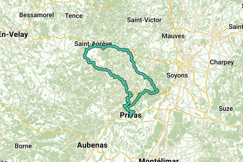 De route loopt door het minder bekende noorden van de Ardeche. Vanaf Privas begint de route met een klim richting Vernoux-En-Vivarais. Dan via Lamastre terug zuidoostwaarts naar Saint-agreve, het begin van de rivier de Eyrieux. Het eerste stuk van deze rivier is niet constant te volgen op de motor, maar vanaf Intres houdt de weg vast aan de rivier. U volgt nu de rivier via de prachtige D120.