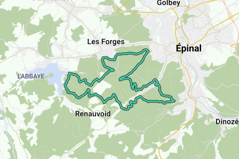 Vertrekken aan de parking van de Route de Renauvoid aan het lac de Bouzey. Deze route volgt stukken aangeduide VTT-routes maar blijkbaar is men bezig de routes rond Epinal te vernieuwen en aan te passen. Vooral brede boswegen en enkele smalle paden. Mooie en aangename tocht!