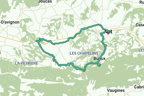 De route loopt eerst langs Lacoste en verder omhoog tot Bonnieux. Voorbij Bonnieux rijden we de Lubéron in. Langs rustige bergwegen en Buoux rijden we naar Apt. Dan langs een fietspad op een oude spoorlijn weer naar Goult.