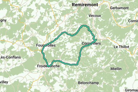 Via La Voivre en Froideconche over binnenwegen naar Fougerolles. Van daaraf via de D83 en D23 terug naar Le Val d'Ajol.