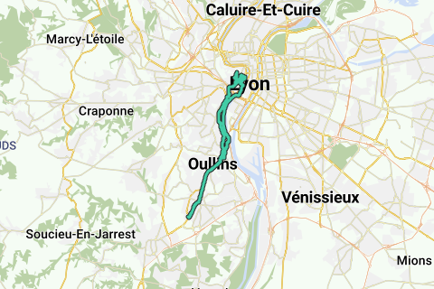 Route vanaf camping Barolles naar het oude centrum van Lyon in de buurt van de Notre Dame