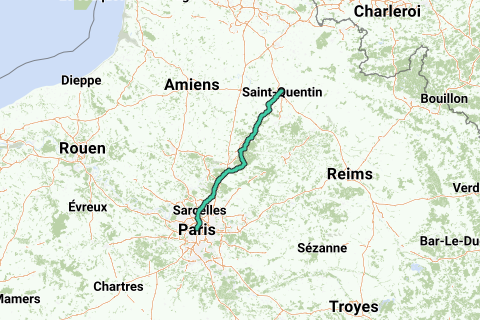 Racefietsvariant van de pelgrimsroute "Le Chemin Estelle" van "Basilique de Saint-Quentin" naar "la Tour Saint-Jacques de Paris", welke een van de routes naar Santiago de Compostella is die door Frankrijk gaat.