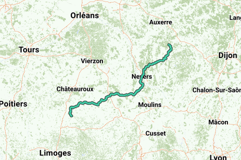 Deel van de pelgrimswandelroute Via Lemovicensis van Vézelay naar Crozant, langs Corbigny, Nevers, St. Pierre-le-Mout, St. Amand-Montrond en Le Châtre.