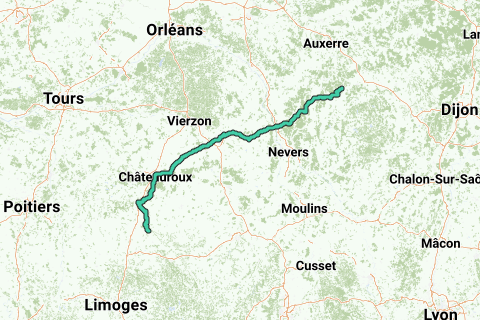 Mountainbike variant van een deel van de pelgrimswandelroute Via Lemovicensis van Vezelay naar Crozant, langs Varzy, Champlemy, Bougy, Bourges en Châteauroux.
