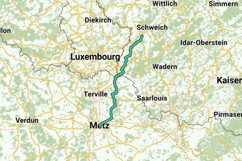 Racefietsvariant van een deel van de Saint-James pelgrimshikingroute van Trier naar Metz, die een aanlooproute is voor de Via Lemovicensis langs Konz, Tawern, Merzkirchen, Borg, Schengen, Aboncourt, Saint-Hubert, Vigy en Vany.