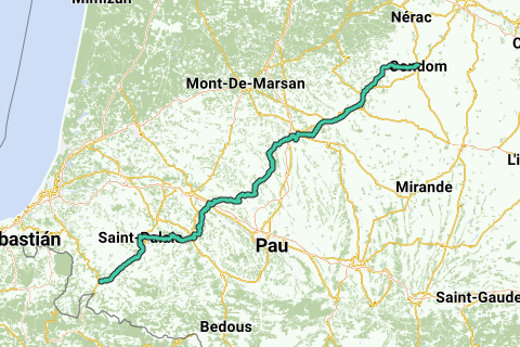 Racebike variant van de Saint-James pelgrimswandelroute Via Podiensis van Condom naar Saint-Jean-Pied-de-Port, langs Manciet en Aire-sur-l'Adour.