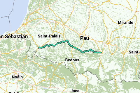 Mountainbikevariant van de pelgrimswandelroute Voie de Piemont die van Lourdes naar Saint-Jean-Pied-de-Port gaat, waar het aansluit op het camino-netwerk naar Santiago de Compostella.