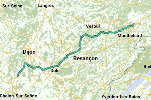 Racefietsvariant van de Saint-James pelgrimswandelroute van Belfort naar Beaune via Dole. Deze route maakt deel uit van het Camino-netwerk naar Santiago de Compostella.