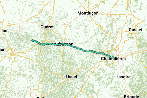 Racebikevariant van de Saint-James pelgrimswandelroute van Clermont-Ferrand naar Châtelus-le-Marcheix via Pontaumur, Bourganeuf en Aubusson. Deze route is een aanlooproute voor de Via Lemovicensis, die deel uitmaakt van het Camino-netwerk naar Santiago de Compostella.
