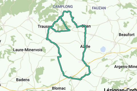 Rit vanuit Félines-Minervois: La Livinière - Siran - Azille - La Redorte - Castelnau-d'Aude - Roquecourbe-Minervois - Puichéric - Rieux-Minervois - Peyriac-Minervois
